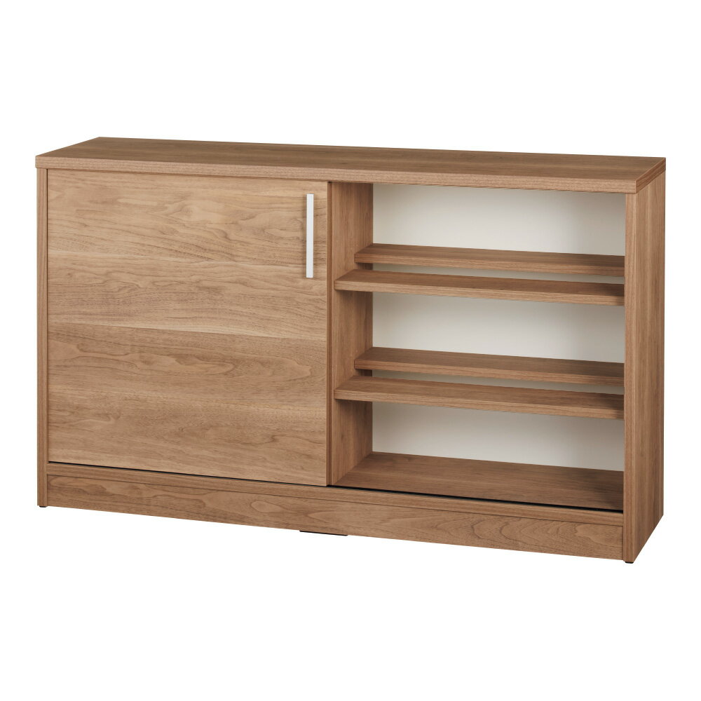 美しく「見せる」とたっぷり「しまう」を同時に叶える1台2役の引き戸収納。 狭い場所でも開閉ができる引き戸式ながら、扉を1枚にすることで通常弱点となる扉内の奥行内寸もたっぷりキープ。 向かって右側の段違い棚板は見た目だけでなく効率的な収納が可能で、収納力も抜かりなし。 安心の「国産」&届いてすぐに使える「完成品」も嬉しいポイント!美しく「見せる」とたっぷり「しまう」を同時に叶える1台2役の引き戸収納引き戸の扉を片側だけの1枚にすることで、片側は効率的に収納物を美しく見せるオープン式の「見せる」収納(お気に入りのコレクションを美しくディスプレイ)、もう片側は引き戸式の「隠す」収納と、1台で「見せる」と「隠す」を実現。 前に物があっても開け閉めが可能な引き戸式。 扉が1枚であることで通常奥行の有効内寸が狭くなってしまう引き戸式収納のデメリットも軽減!段違い棚でコレクションを美しくディスプレイ向かって右側は段違い棚を採用。 こちら側を開けておくことでコレクションをより美しく効率的にディスプレイできます。 コレクションの背景となる背板のカラーは全て「白」にすることでアイテムの魅力が一層引き立ちます。 日頃愛用しているお気に入りのグッズを美しく見せると同時に、さっと取り出せる便利な構造です。 片側のみを隠す1枚扉の引き戸仕様向かって左の棚は、引き戸で「隠す」収納に対応。 棚板は手前から奥まで1枚の通常の棚板で、奥行がある箱ものなどもしっかり収納できます。 普段使わないアイテムを隠して、お部屋をすっきりと片づけることができます。 これ1台でメリットがいっぱい♪前方にスペースの必要ないスライド式引き戸は、省スペースで効率的。 引き戸の位置を変えることで、通常棚をディスプレイに、段違い棚を隠すなど、季節やインテリアに合わせて印象を変えることが可能です。 引き戸が一枚だけなので、価格もお手頃。 1台でメリットいっぱいの収納です。 選べる幅と高さ。 カラーは3種類幅は90cmと120cm、高さは70cmと85cmから選べます。 カラーはナチュラル、ホワイト木目、ウォルナットの3種類。 設置する場所やインテリアのテイストに合わせて、6通りの組み合わせが楽しめます。 同シリーズのチェストと合わせてワンランク上の収納へ同シリーズの引き出し式チェストと組み合わせれば、収納力がぐーんとアップ♪ベースカラーを統一することで、インテリア全体にまとまりが生まれます。 ページ下部に画像の説明がございます。 一部別売りの商品もございますので、説明文ご確認のうえご注文ください。 >画像の説明はこちら<仕様・サイズこの商品はセール品のため返品できません■色:(ア)ホワイト木目 (イ)ナチュラル (ウ)ウォルナット■サイズ:幅120cm奥行30cm高さ70cm■素材:プリント化粧繊維板■可動棚板小4枚大2枚付き■お客さまにて取っ手取付■完成商品■日本製【送料マーク:D】 梱包サイズが大きいため、お部屋まで搬入できない場合があります。 ご注文の際は、必ず事前に梱包サイズと設置場所までの搬入導線(通路の幅・高さ等)をご確認ください。 >詳細な説明はこちら<この商品の配送料は5000円(税込)です。 ※北海道・九州・沖縄は地域特別配送料がかかります。 この商品は下記のサービスが選択できます。 ※組み立て・開梱サービスは日時指定ができません。 お届け前に配送所より配達日時のご連絡をさせていただきます。 ※別途配送料金がかかります。 有料開梱サービスについて 画像の説明(ウ)ウォルナット(ウ)ウォルナット コーディネート例 ※写真は左からチェスト 幅45cm高さ70cm、片引き戸 幅120cm高さ70cmです。 (ウ)ウォルナット(ウ)ウォルナット 扉を外した状態右側は小物が引き立つ段違い棚&ホワイト色の背板で「見せる収納」 ※画像は高さ85cmタイプ左側は通常の棚板で「しまう収納」 ※画像は高さ85cmタイプ(ウ)ウォルナット引き戸式なので狭い場所にも置けます。 (ア)ホワイト木目(ウ)ウォルナット(イ)ナチュラル背面奥行内寸が広いのは片引き戸ならでは。 ※画像は高さ85cmタイプ使用イメージ(ア)ホワイト木目 ※写真は片引き戸 幅90cm高さ85cm 【クーポン10%OFF 1/11迄】 完成品 見せるも隠すも収納シリーズ 片引き戸 幅120cm高さ70cm キャビネット リビングボード リビング収納 629250 28,404 ~