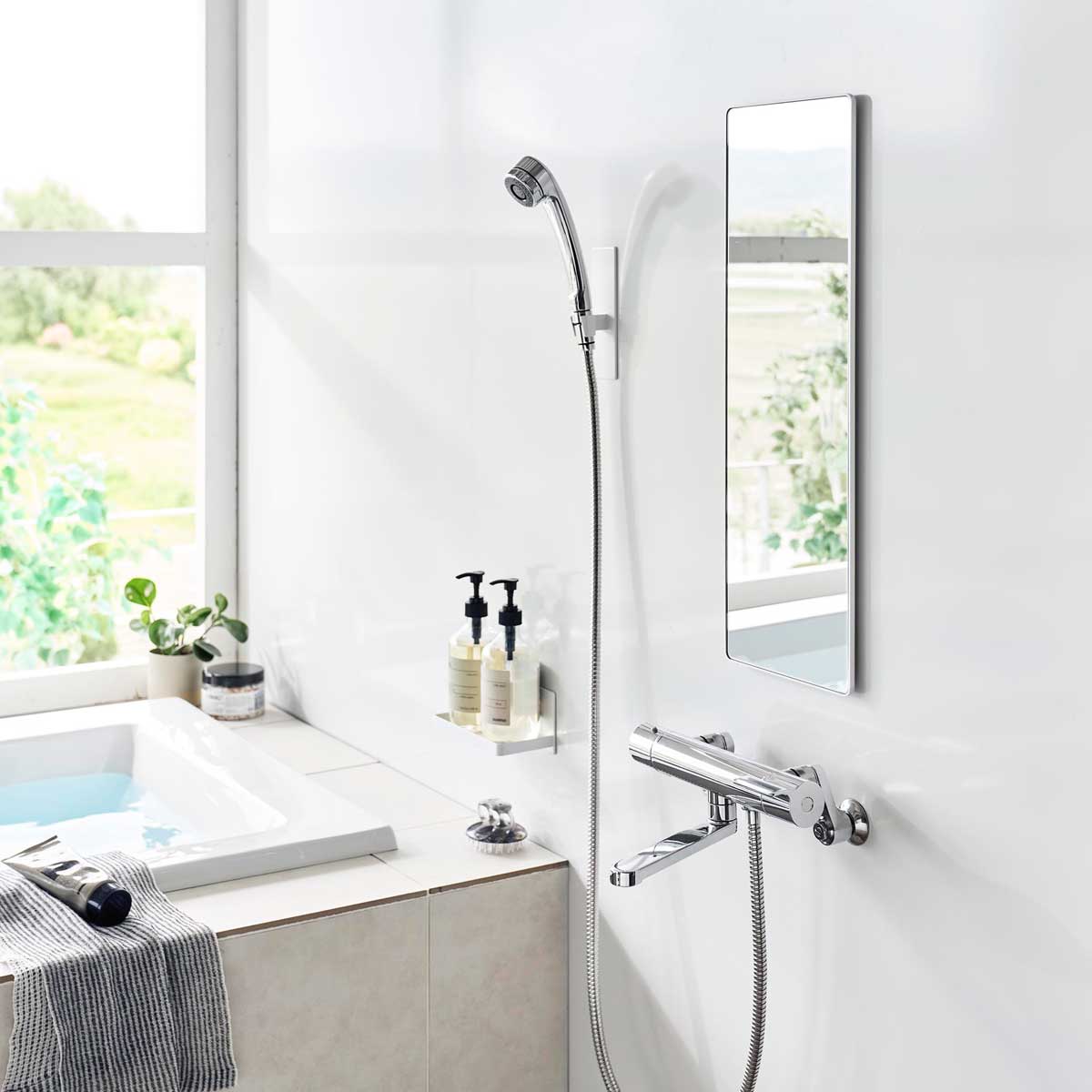 マグネットで簡単設置 美しく、透明感があるロングサイズの角型ガラス製バスルームミラーです。 フレームと壁の隙間に指を入れて取り外しやすい形状なので、お掃除がしやすく清潔に保てます。 曇り止めフィルムを全面に粘着加工しているため、鏡面が曇らず快適にお使いいただけます。 商品の情報 ・ブランド:YAMAZAKI(山崎実業)/日本 ・ジャンル:浴室ミラー ・主な素材:ABS樹脂、マグネット(フレーム)/シリコーンゴム(滑り止め)/3mm厚ガラス(ミラー)/PET(表面フィルム) ・生産国:中国 ・サイズ:約W205xD14XH605mm ・重量:約1600g ・耐熱温度:90℃ ・耐冷温度:-40℃ ・使用できる面:マグネットがつく凹凸のない平らな面 スチール面 この商品の仲間たち tower タワー マグネットバスルームミラー 角型 ロング 10308 ホワイト tower タワー マグネットバスルームミラー 角型 ロング 10309 ブラック 浴室ミラー 山崎実業 正規品 tower タワー マグネットバスルームミラー 角型 ロング マグネットで簡単設置 風呂鏡 マグネット設置 大きめ バスルームミラー 10308 ホワイト 14,300 ~