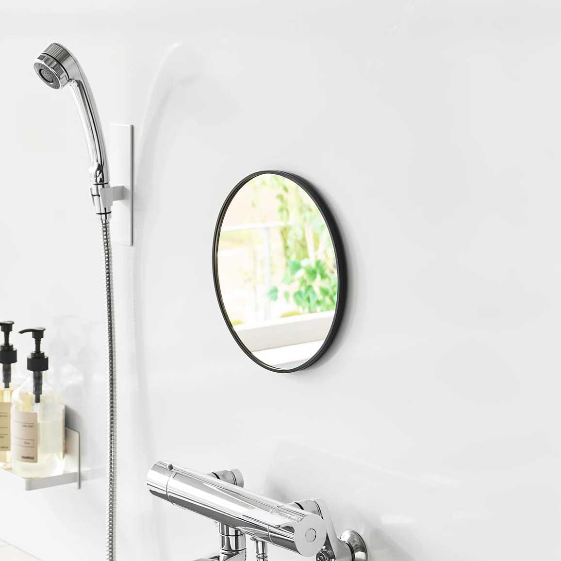 マグネットで簡単設置 美しく、透明感がある直径23cmの丸型ガラス製バスルームミラーです。 フレームと壁の隙間に指を入れて取り外しやすい形状なので、お掃除がしやすく清潔に保てます。 曇り止めフィルムを全面に粘着加工しているため、鏡面が曇らず快適にお使いいただけます。 商品の情報 ・ブランド:YAMAZAKI(山崎実業)/日本 ・ジャンル:浴室ミラー ・主な素材:ABS樹脂、マグネット(フレーム)/シリコーンゴム(滑り止め)/3mm厚ガラス(ミラー)/PET(表面フィルム) ・生産国:中国 ・サイズ:約W230xD14xH230mm ・重量:約550g ・耐熱温度:90℃ ・耐冷温度:-40℃ ・使用できる面:マグネットがつく凹凸のない平らな面 スチール面 この商品の仲間たち tower タワー マグネットバスルームミラー 丸型 23cm 10175 ホワイト tower タワー マグネットバスルームミラー 丸型 23cm 10176 ブラック 浴室ミラー 山崎実業 正規品 tower タワー マグネットバスルームミラー 丸型 23cm マグネットで簡単設置 風呂鏡 マグネット設置 バスルームミラー 10176 ブラック 6,380 ~