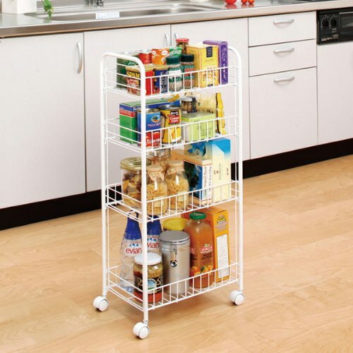 バスケットタイプの収納ワゴン ●小物の収納、食品の収納などに。 ●キャスター付きで楽々移動。 ●サイズ:約幅26.5cm×奥行45.5cm×高さ76.5cm。 ●構造部材:金属(スチール)。 表面加工:エポキシ樹脂塗装。 ●耐荷重:1段あたり約5kg。 全体:約15kg。 ●カラー:ホワイト。 ●本商品は一般家庭用です。 ●高温多湿ではない室内で、水平な床面に設置してください。 ●その他、ご使用上の注意をよく読み正しくお使いください。