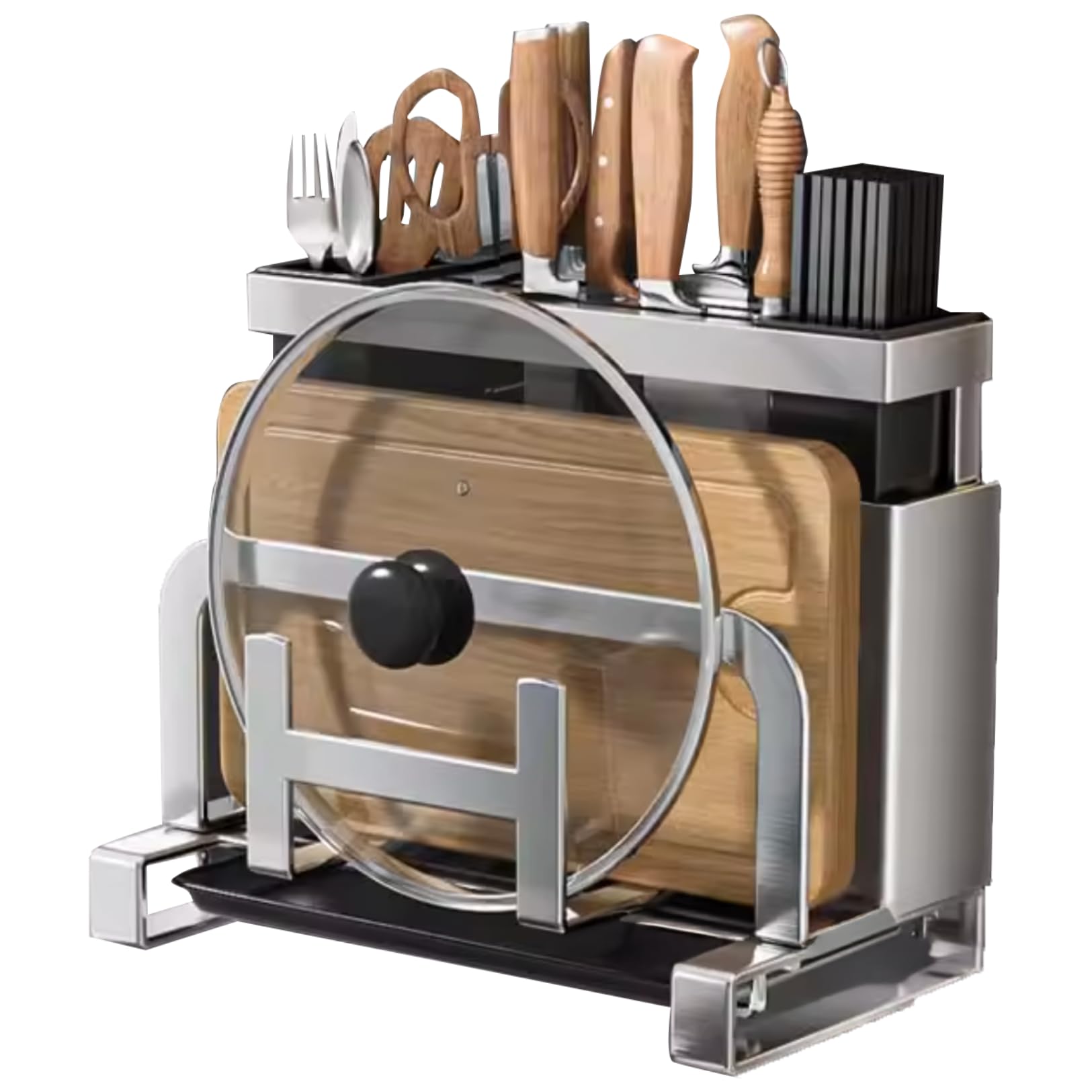 【送料無料】PLEAVIT まな板スタンド 包丁立て 鍋蓋スタンド お箸立て キッチン用収納ラック 多機能 水切りトレイ付 色:ステンレス 5,976 ~
