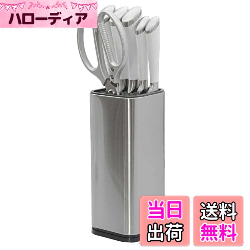 商品情報商品の説明主な仕様 【キッチンを快適に】包丁の収納にお使いいただける包丁スタンドになります。 垂直に収納するため水きれも良く、刃も隠れますので怪我を防止することができます。 【丸洗い可能で衛生的】ステンレス製のため錆びにくくカビなども発生しにくいので衛生的です。 【置きやすい縦型形状】キッチンに包丁、ナイフやアイスピックといった調理用品を立てて収納することで場所を取らず複数本まとめて収納いただけます。 【商品詳細】本体1個、サイズ:高さ23.2cm,縦16cm,横11.3cm、最大収納本数:14本,ハサミ専用穴1個、重さ:約668g、材質:ステンレス,PP【安心のサービス】All Brightオリジナルパッケージでお届けします。 製品に何らかの不具合等がございましたら、購入後30日間は返品対応をさせて頂きますので安心してお使いください。 商標登録6352053号 【送料無料】AllBright 包丁スタンド 包丁立て 包丁差し ナイフラック ホルダー スタンド キッチン 収納 保管 縦置き 14本収納可能 4,204 ~