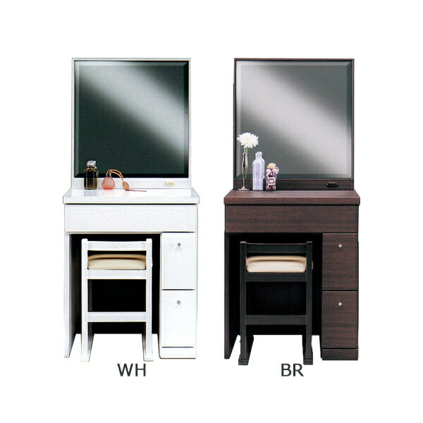 一面鏡 ドレッサー 椅子付き コンパクト 化粧台 ドレッサーセット スツール付き 引出収納 シンプル 60ドレッサー 1面鏡 MBR LBR WH 52,500 ~