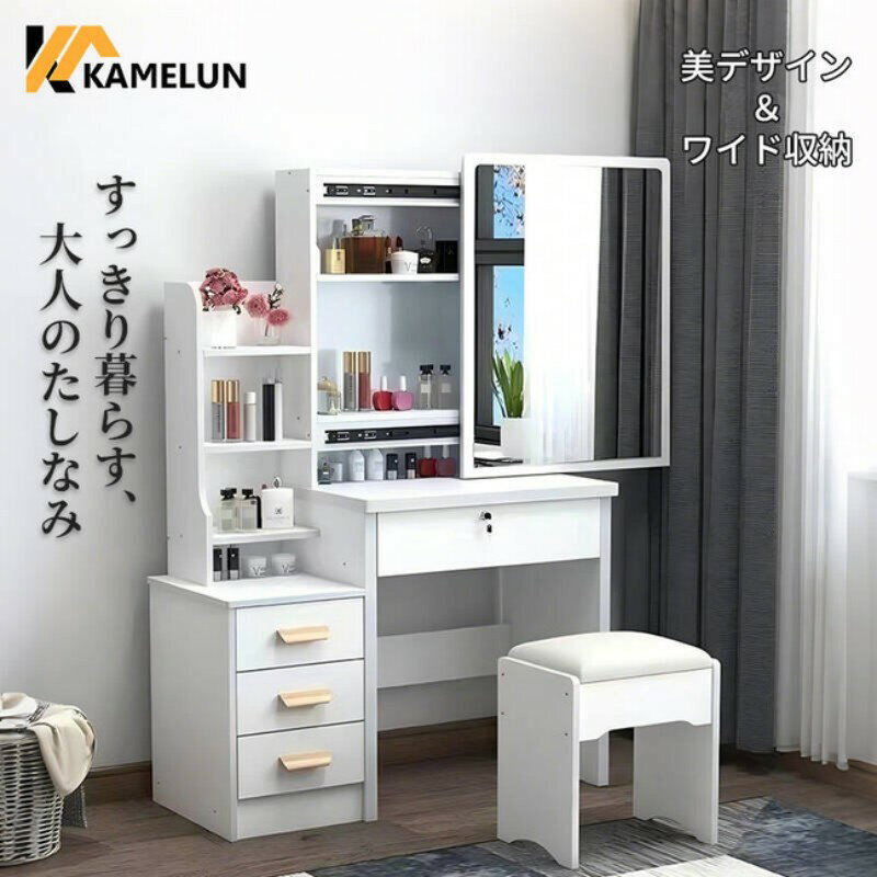 ドレッサー 北欧風 鏡台 オシャレ ホワイト 姫系 スツール付き デスク おしゃれ 椅子付き コスメ台 化粧台 女優ミラー 70CM*47.5CM 広い鏡 J106 ドレッサーのみ(椅子なし)オシャレ 北欧風 ドレッサー特徴「商品仕様」本体:MDF(中密度繊維板)広くミラ」お化粧の時に、しっかりミラに映るように大きいなミラを設計されています「シンプルデザイン」可愛いホワイトと同じ色の天然木足をマッチしてスタイリッシュな家具を作られ「収納力満点」大容量のドレッサーで2杯引き出しがあってメイク道具とコスメを仕分けして収納しやすいです。 大きな引き出しにはメイク道具、ドライヤー、雑誌を収納でき、 小さな引き出しにはジュエリ、香水、ルージュなどの小物入れます商品情報サイズ幅 80cm 奥行き 40cm 高さ 126cm 材質MDF(中密度繊維板) 商品情報ドレッサーのみ(椅子なし)簡単組み立て式組み立ては、脚だけ取り付けるので、そこまで難しくはないですが、向きがあるのでご注意ください。 (組み立て説明書付き、女性一人でも開封から組み立てまで30分もあればできます。 商品の発送商品は常に在庫あり、 普通ご注文から1-3営業日での発送になります当店は検品梱包配送を丁寧するため、到着までお時間いただきます。 お急ぎの方は店舗のお問い合わせの方にご連絡をお願いいたします。 人気商品のため、欠品の場合はお時間いただきますので、予めご了承ください。 ドレッサー 北欧風 鏡台 オシャレ ホワイト 姫系 スツール付き デスク おしゃれ 椅子付き コスメ台 化粧台 女優ミラー 70CM*47.5CM 広い鏡 J106 ドレッサーのみ(椅子なし)オシャレ 北欧風 ドレッサー特徴「商品仕様」本体:MDF(中密度繊維板)広くミラ」お化粧の時に、しっかりミラに映るように大きいなミラを設計されています「シンプルデザイン」可愛いホワイトと同じ色の天然木足をマッチしてスタイリッシュな家具を作られ「収納力満点」大容量のドレッサーで2杯引き出しがあってメイク道具とコスメを仕分けして収納しやすいです。 大きな引き出しにはメイク道具、ドライヤー、雑誌を収納でき、 小さな引き出しにはジュエリ、香水、ルージュなどの小物入れます商品情報サイズ幅 80cm 奥行き 40cm 高さ 126cm材質MDF(中密度繊維板)商品情報ドレッサーのみ(椅子なし)簡単組み立て式組み立ては、脚だけ取り付けるので、そこまで難しくはないですが、向きがあるのでご注意ください。 (組み立て説明書付き、女性一人でも開封から組み立てまで30分もあればできます。 商品の発送商品は常に在庫あり、 普通ご注文から1-3営業日での発送になります当店は検品梱包配送を丁寧するため、到着までお時間いただきます。 お急ぎの方は店舗のお問い合わせの方にご連絡をお願いいたします。 人気商品のため、欠品の場合はお時間いただきますので、予めご了承ください。