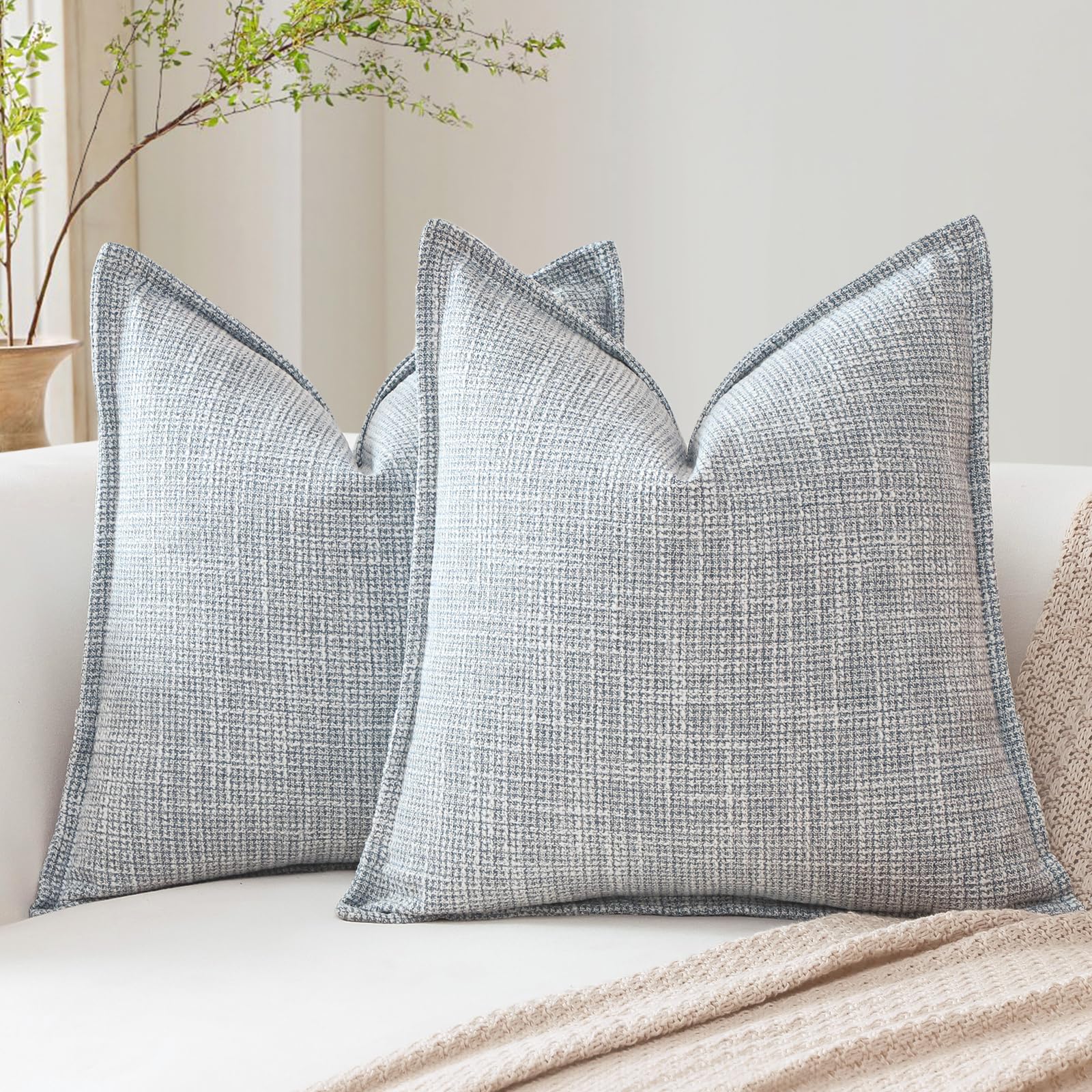 Otostar クッションカバー 北欧 2枚セット 無地 麻 シンプル おしゃれ 可愛い モダン ファスナー インテリア 装飾用ピローカバー (45x45cm,ブルーグレー) 2,183 ~