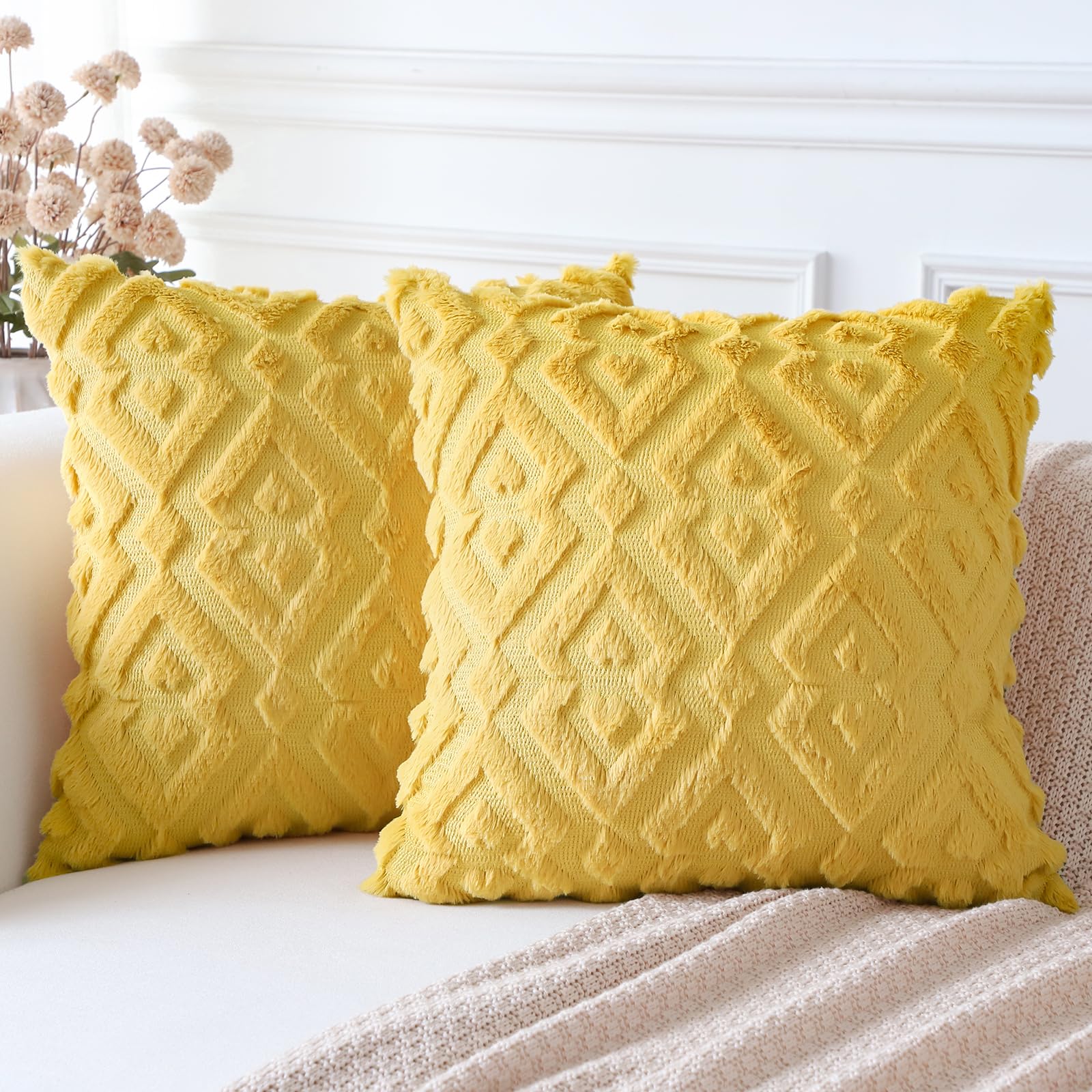 Otostar クッションカバー 北欧 2枚セット おしゃれ 可愛い ショートウール ベルベット 柄 ひし形 幾何学模様 ファスナー インテリア 装飾用ピローカバー (45x45cm,イエロー) 2,700 ~