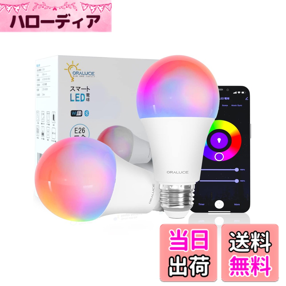 商品情報商品の説明主な仕様 【LED電球からスマートライフへ】取付工事なし、ハブなし、電球を交換するだけで、古い家でもすぐにスマートホームへ切り替えられます。 スマホ、Alexa、Google Homeなどを通じて、どこにいってもタイマー・スケジュールを設定でき、明るさ、色温度、カラーを音声で調節、お部屋の演出の幅が広がります。 【Bluetooth &Wi-Fi の接続は超低遅延】スマホで簡単に接続できます。 自動的追加、または手動でスマホと繋げられます。 Wi-FiとBluetoothが同時に連結することで、Wi-Fiだけ(通常1秒ぐらい遅延あり)より安定、迅速な接続、操作を実現します。 (詳しくは取扱説明書をご参照ください)。 ※注意: スマホとの接続する場合は、スマホのWi-Fi(Wi-Fiルーターが必要)とブルートゥース機能を同時にONにして、かつ2.4GHz帯域のネットワークに接続してください。 そうしないと接続できない場合があるので、お買い上げのあの前にぜひご確認ください。 【声でもスマホでもコントロールできる】『スマートライフ(Smart Life)』アプリを利用し、スマートプラグで制御することで、自宅から出発したらオフし、外出先から帰宅したらオンする設定が、分かり易い手順で実行できます。 更にアレクサアプリなどとの連携もできるので、音声操作も交えて、便利な設定を増やせます。 【1600万色以上・フルカラーの照明】2700k-6500k、電球色から昼光色まで調色、1%-100%無段階調光、1600万色RGB機能を搭載。 本や新聞を読むときには文字が見やすい昼光色、眠る前には暖かい電球色、テレビゲームをするときにはRGB。 豊かな色彩表現で、心地よい時間に寄りそうあかりが、なにげない毎日を、少しだけとくべつに変えていきます。 【PSE認証・】CE、RoHS、PSE認証済み。 ご購入日より24ヶ月のを提供いたします。 商品に使用上の質問があれば、「注文履歴≫出品者に連絡する」までお問合わせください。 ORALUCEは迅速に対応いたします。 # 【送料無料】ORALUCE スマート LED電球 E26 60W相当 調光調色 スマートライト マルチカラー 1600万色RGB 昼白色&電球色 Alexa/Google Home対応 ハブ不要 遠隔操作 取扱説明書付 2個入 LDA9F-E26/2P スマートホームに興味がありますか?電球を変えるだけで、あなたの生活がもっと便利で楽しくなります。 このORALUCEスマートLED電球は、手軽に導入でき、色や明るさを自由に調整できるため、日常生活に新しい風をもたらします。 何度も電気を消し忘れてしまうことや、家に帰ると薄暗い部屋に困ることはありませんか?この製品があれば、リモコンやアプリで遠隔操作ができるため、帰宅前に明かりを点けたり、外出時にも簡単に電源をオフにできます。 また、1600万色のRGBを含む豊富な色合いで、自分の好みに合わせた空間を演出できます。 リラックスしたい時、集中したい時、それぞれのシーンにぴったりの明かりを選べるのは大きな魅力です。 さらに、AlexaやGoogle Homeとの連携も可能だから、声だけで操作することも簡単です。 手間いらずのスマートライフを始めてみませんか? ## スマートライフへの第一歩 スマートライトとしてのORALUCE LED電球は、特別なハブなしで簡単に導入できます。 設置は電球を取り替えるだけ。 取り扱いも手軽で、複雑な設定は必要ありません。 例えば、古い電球を外し、新しいスマート電球を取り付けるだけで、すぐに使い始められます。 また、スマートフォンを使った簡単な接続手順で、自宅での操作が可能です。 この電球はBluetoothとWi-Fiに対応しており、接続しても遅延を感じることはありません。 従来のWi-Fi接続では1秒ほどの遅れがあったとしても、同時にBluetoothと接続することにより、より安定した操作が可能になります。 この機能は、スマートフォンだけでなく、遠隔操作する際にも便利です。 さらに、アプリを通じて簡単にスケジュールやタイマーを設定できます。 たとえば、朝の特定の時間に部屋を明るくしたり、夜には柔らかな暖色に変えることができます。 このように、暮らしのクオリティを上げるための新しい手段となるでしょう。 毎日の生活が、より便利で快適になることを実感してみてください。 ## バリエーション豊かなライティング ORALUCEのスマートLED電球は、1600万色のRGBと2700Kから6500Kという幅広い色温度を持ち、さまざまなシーンに対応できます。 例えば、仕事をしているときは昼光色で明るく、リラックスしたいときには暖かい電球色に切り替えられます。 このような細やかな調整が可能なため、読書や映画鑑賞、お友達と集うときなど、シーンに応じた最適な照明を実現します。 さらに、1%から100%までの無段階調光機能も搭載されており、自分の好みに合わせた明るさを簡単に設定可能です。 これにより、心地よい時間を過ごすことができ、何気ない日常が特別なものに変わります。 照明のもたらす影響は、ご存知の通り、心の状態にも深く関係しています。 正しい色や明るさを選ぶことで、生活の質を向上させる一助となります。 実際、ご家