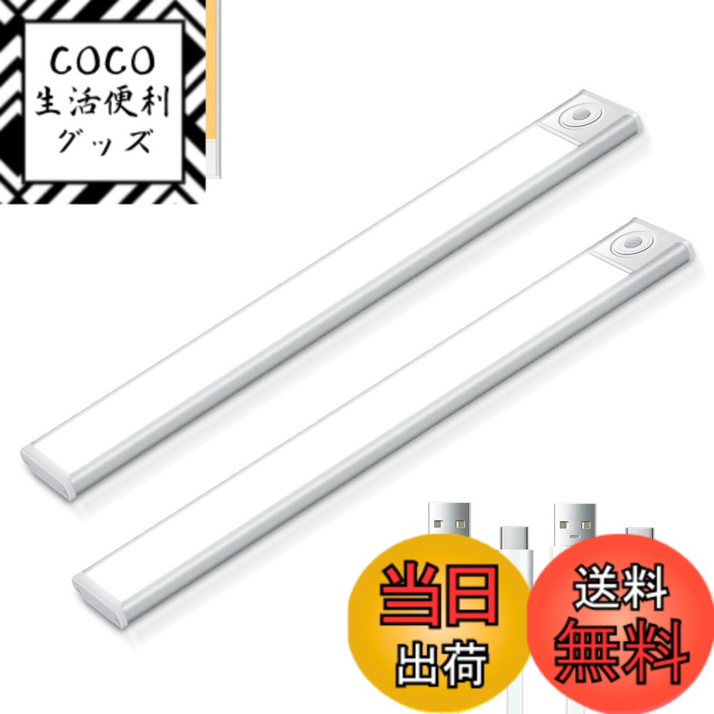 【送料無料】CHAMCHOI 人感センサーライト 室内 led 充電式 30cm 超薄 マグネット ledライトバー Type-C充電 1800mAh 三色温 無段階調光 キッチン 照明 足元灯 取付簡単 配線工事不要 省エネ 高感度 クローゼット 部屋 玄関 廊下 キッチン 色:シルバー、サイズ:2個入 3,810 ~