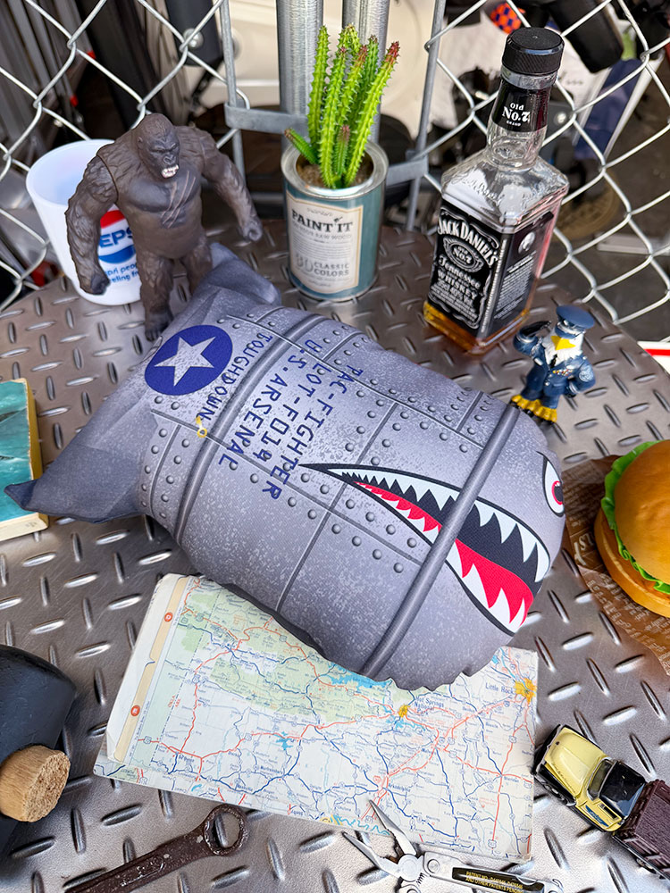 ミサイルだと思ったら・・・・もっちもちのクッションでした。 はいもうアウト。 完全にジャンル違反。 雑貨屋さんの棚にあったら絶対触っちゃうヤツです。 このクッション、まず見た目がやりすぎ。 戦闘機のノーズアートみたいなシャークマウス、リベット打たれまくった金属パネル柄、。 「これ本当に飛ぶ?」ってレベルのリアルさなのに、触った瞬間、ふわっ・・・・??? ミサイルの威厳はどこ行った。 怖い顔してるのに抱き心地は天使。 攻撃的デザインなのに寝ると超やさしい。 この“見た目と中身の大事故みたいなギャップ”が最高すぎる! ソファに置けば来客が必ず二度見、ベッドに置けば「なんで武器と寝てるの?」と心配され、車に乗せたら職質リーチ(冗談です)。 生活空間すべてにツッコミを発生させる魔力を持ってます。 でも気づけばこのミサイルを抱いてテレビ見てるんですよ! なんか悔しいのに、めちゃくちゃ気持ちいいから許すしかない。 “危険物の皮をかぶった癒やし担当” 人生にちょっとした爆風が欲しい人に、どんピシャなクッションです(o ̄∇ ̄)o サイズ:横27cm×厚み7.5cm×縦20.5cmm(約)類似商品はこちらミリタリーキーホルダー アメリカン雑貨 アメ770円ミリタリーキーホルダー アメリカン雑貨 アメ770円サイドワインダー ミリタリーワッペン アメリカ660円ファイヤーデプト キーホルダー アメリカン雑貨770円タックフォース フライトリボン キーホルダー 550円ペールカン ストレージ アメリカン雑貨 アメ4,378円タックフォース シャークボム キーケース 最4,290円ミリタリーピンバッジ アメリカン雑貨 アメリ770円VF-143 ピーキンドッグス ミリタリーワッ660円新着商品はこちら2026/1/12SDトイ ボブ・マーリー PVC フィギュア 17,600円2026/1/12OPEN & WELCOME ウッドスタンドサ13,750円2026/1/12映画 ロッキー オフィシャルポスター ※フレー1,760円再入荷はこちら2026/1/9ナッシュビル グランド・オール・オプリ ブリキ2,640円2026/1/9モノグラム社 アイアンマン PVCバンク 貯金6,435円2026/1/9目玉ボヨヨーン! ポッピングアイ エイリアン 748円2026/01/13 更新 タックファイター シャークボムナップ クッション タックフォース アメリカン雑貨 アメリカ雑貨 ミリタリーグッズ ミリタリー雑貨 サバイバルゲーム サバゲー おしゃれ かっこいい ガレージ雑貨 ガレージング雑貨 ショップインテリア 5,500 ~