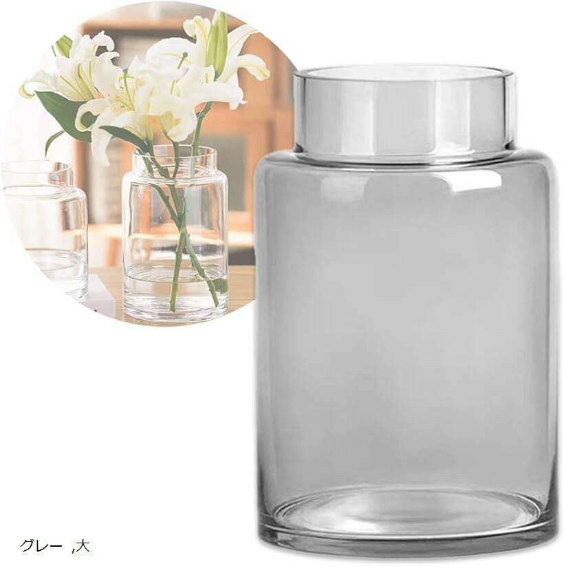ガラス花瓶 フラワーベース 北欧風 おしゃれ 広口 インテリア シンプルデザイン (グレー, 大) 3,780 ~