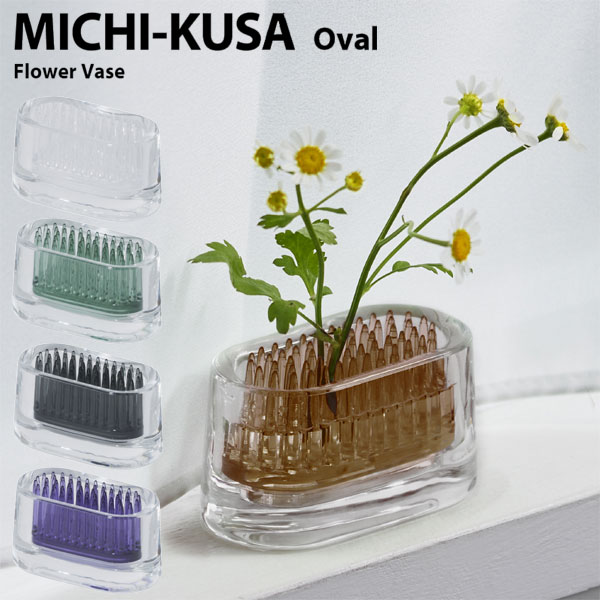 道端の花を摘んで楽しむミチクサにオーバルタイプが仲間入り。 オーバルタイプは窓辺や本棚、寝室のサイドテーブルのような小さなスペースでも生け花を楽しめます。 スペースがある場所では横に置いて複数の花を生けるとワイドに見せることもできます。 縦・横と置き方を変えることで同じ花でも違う見せ方をすることができます。 サイズ:横幅7×奥行4×高さ4cm 材質:バリウムガラス(本体)、ポリカーボネート(樹脂パーツ) 重量:約150g ※ガラスは手づくりのため、幅や高さ、気泡、シワなどに個体差があります。 道端の花を摘んで楽しむミチクサにオーバルタイプが仲間入りです。 窓辺や本棚のような小さなスペースに花の彩りが広がります。 宝石の色をイメージした剣山と花との組み合わせで自分だけのコーディネートをお楽しみください。 剣山の色は落ち着きのある宝石色5色からセレクトしました。 剣山は茎の太さに合わせて挿せるので、大小様々な草花から枝物まで幅広い植物を生けられます。 透明度の高いバリウムガラスはガラス職人によって、1つずつ手づくりされています。 透き通ったガラスに映る水と剣山が織りなす色合いが美しく花を引き立たせます。 オーバルタイプは窓辺や本棚、寝室のサイドテーブルのような小さなスペースでも生け花を楽しめます。 スペースがある場所では横に置いて複数の花を生けるとワイドに見せることもできます。 縦・横と置き方を変えることで同じ花でも違う見せ方をすることができます。 dmc. 河野史明 2001年dmc.を設立。 ユーザーインターフェイスデザインとプロダクトデザインを総合して行うデザイン開発のパイオニアとなる。 技術と人を優しくつなぐアイデアは長く愛されるデザインを育み、ロングセラーも多数。 ドイツiF賞など受賞多数。 アッシュコンセプト☆ミチクサ アッシュコンセプト☆Tate Otama standard タテオタマ スタンダード アッシュコンセプト☆KUSA クサ アッシュコンセプト☆フォトハンガー Koneko Cup コネコカップ アッシュコンセプト オー!! アッシュコンセプト☆SPLASH Standard スプラッシュ スタンダード 傘立て アニマルラバーバンド コレクション アッシュコンセプト☆Ninjapin・ニンジャピン 15pcs Tag Cup タグカップ Remococo リモココ アッシュコンセプト☆CAOMARU カオマル アッシュコンセプト☆Green Pin・グリーンピン アッシュコンセプト☆UKIHASHI ウキハシ スタンダード アッシュコンセプト☆cup men カップメン アッシュコンセプト☆Evolutionエボリューション イレイサー アッシュコンセプト☆バーディーペーパーナイフ PBT アッシュコンセプト☆Folio・フォリオ ティッシュケース アッシュコンセプト☆TSUN TSUN ツンツン ソープディッシュ アッシュコンセプト☆リーフ 【ポイント2倍】アッシュコンセプト☆ミチクサ オーバル【道草 プラスディー】 2,750 ~