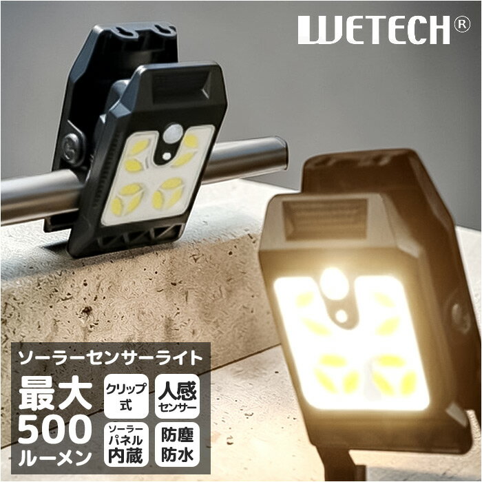 〜ご利用シーン・イベント〜 下記ご利用シーンやイベントなどでご使用することが可能です。 ※一部イベント等はご使用頂けない場合がございます。 お正月 初売り 初詣 お年玉 成人の日 成人式 節分 バレンタインデー 桃の節句(ひなまつり) ホワイトデー 春物入荷 お花見 入学式 ゴールデンウィーク 母の日 衣替え 父の日 梅雨 夏物入荷 山開き 海開き 七夕 お中元 暑中お見舞い 夏休み 花火大会 盆踊り 夏祭り 秋物入荷 防災 敬老の日 ハロウィン 運動会 文化祭 学園祭 お歳暮 冬物入荷 クリスマス プレゼント 贈物 贈り物 ギフト お返し 引っ越し祝い 新生活 お祝い 内祝い 出産祝い 引っ越し祝い 引越し祝い 引越祝い 新築祝い 成人祝い 卒業祝い 就職祝い 合格祝い 入園祝い 入学祝い 進学祝い 結婚祝い 婚約祝い 退院祝い ボーナス祝い 七五三祝い 退職祝い 還暦祝い 長寿祝い 誕生日 お誕生日 大掃除ITEM DETAILSブランド名 WETECH(ウィテック)商品名クリップ式ソーラーセンサーライト商品説明【挟むだけで頼れるライト】・配線不要のソーラー充電式で、暮らしの安心をサポート!【最大500ルーメンの実力】・暗がりもしっかり照らす頼もしい明るさで、玄関先や駐車場の防犯対策にぴったりな一台◎【クリップ式で手軽に設置】・パイプや柵に挟むだけだから、工具いらずで届いたその日から使える手軽さ!【3つの点灯モード搭載】・人の動きを感知して光るモーションや常時点灯など、シーンに合わせて使い分けできる♪【太陽光で繰り返し充電】・ソーラーパネル内蔵だから電池交換や配線の手間がなく、電気代を気にせず使える安心感〇【軽量コンパクトな防水仕様】・防塵・防水性能を備えつつ軽量だから、雨の日の屋外でも頼れるタフな相棒。素材ABS・PC生産国中国サイズ[縦]約12cm/[横]約7.3cm/[奥行]約6.2cm[クリップ開閉幅]約3.5cm※サイズはメーカー公表サイズです。実際の商品とは多少の誤差が生じる場合がございます。あらかじめご了承ください。重量約101g注意点[付属品]取り付けネジ・アンカープラグ x 各2個※お取り扱いの際は、商品やパッケージなどに記載されている品質表示、アテンションタグ、ご使用上の注意事項などを必ずご確認下さい。※本来の目的以外にはご使用にならないで下さい。※カメラやモニターの性質により、画像と実物の色の違いがある場合がございますのでご理解願います。 wetech ウィテック ソーラーセンサーライト 楽天 ソーラーライト 照明 センサーライト ライト 人感センサーライト 防犯ライト クリップライト クリップ式 クリップ 人感 取付簡単 自動点灯 自動消灯 ソーラ充電 簡単設置 日用品 生活雑貨 1,703 ~