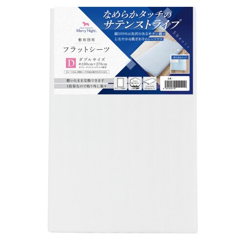 メリーナイト シーツ フラットシーツ サテンストライプ ホワイト 敷布団用 ダブル 約180×270cm 綿100% 上品な光沢感 ホテルライク しなやかな肌ざわり 洗える オールシーズン 373002-06 4,751 ~