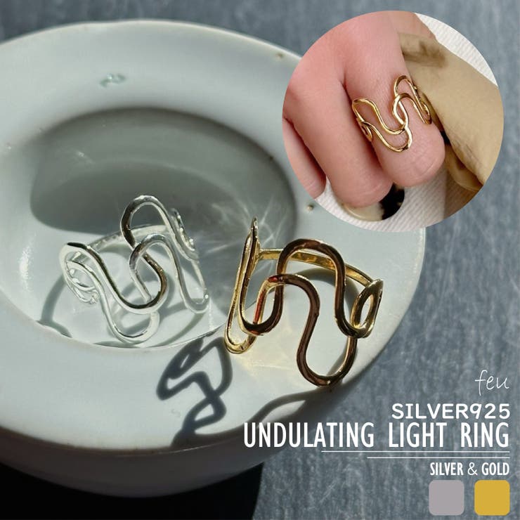 【SILVER925】UNDULATING LIGHT RINGウェーブフォルムが特徴的なSILVER925リング適度なボリュームと透け感の絶妙なバランスで、手元をスタイリッシュに飾るアイテム。 カジュアルスタイルにはもちろんエレガントなコーディネイトにもおすすめです。 SILVER925特有の経年変化もお楽しみ頂けます。 カラーはシルバー・ゴールド(18Kコーティング)の2色になります。 ≪サイズ詳細≫・12.5号------------------------≪素材≫・シルバー925-----------------------------≪注意事項≫○お取扱いに関して素材感:シルバー925の為、柔らかいです。 無理に曲げると、折れる場合があります。 お取扱いの際は十分にご注意下さい。 ・長期放置やスプレー香料などのご使用はお避け下さい。 アレルギー体質の方や体調が低下している方はかぶれる事があります。 ------------------------------≪お手入れ方法≫使用状況、頻度によりSILVER特有の変色が起きる場合があります。 定期的にSILVER専用ケア用品でお手入れ頂くことをお勧めいたします。 商品による怪我、アレルギートラブルには弊社では責任負いかねますので十分ご理解頂いた上でご使用お願いします。 ------------------------------≪品質に関して≫・お使い頂くのに問題ない程度の、多少のキズ・汚れ・へこみ・メッキムラがある場合があります。 ・入荷時期により若干のカラー・仕様の変更がある場合がございます。 ・モニターやお使いの環境により実際の商品と多少色味が異なって見える場合がございます。 以上をご了承の上お買い求めください。 #SILVER925#リング#ニュアンスデザイン#ギフト#アレルギー対応素材#韓国ファッション#新作返品・交換について購入後の交換は受け付けておりません。 予めご了承ください。 返品を希望される場合は購入履歴一覧の「ショップへの問い合わせ」よりお問い合わせください。 =========================複数配送先指定について1件の注文に対して、異なる住所への配送は対応出来かねます。 恐れ入りますが、異なる住所へ配送をご希望の場合、配送先毎に分けて注文いただきますようお願い申し上げます。 【アクセサリーWOMEN】シルバー ゴールド F