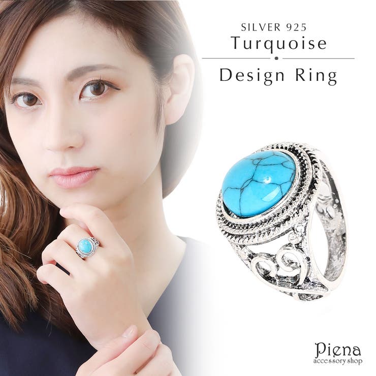 【10%OFFクーポン!2/10(火)1:59まで】アクセサリーショップPIENA リング メンズ レディース フェイクターコイズ合金製 シルバー925仕上げ 太め ゴツめ ボリューム感 重厚感 カジュアル 普段使い カッコイイ オシャレ エスニック プ 1,398 ~