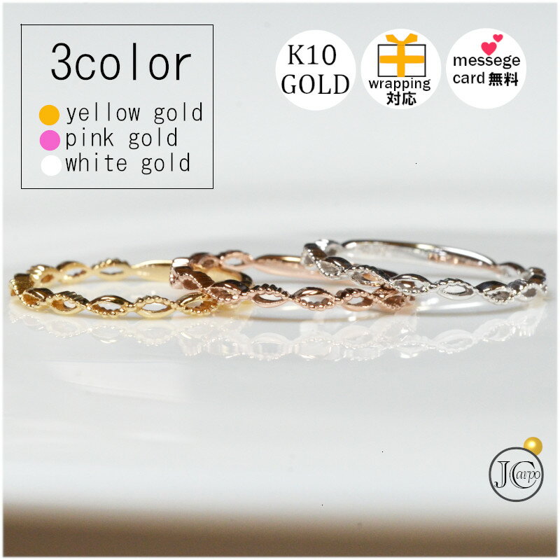 リング k10 ダイヤモンド リボン レディース 金属アレルギー対応 細み ピンキー 指輪 10k ギフト クリスマス ホワイトデー 記念日 プレゼント 49,800 ~