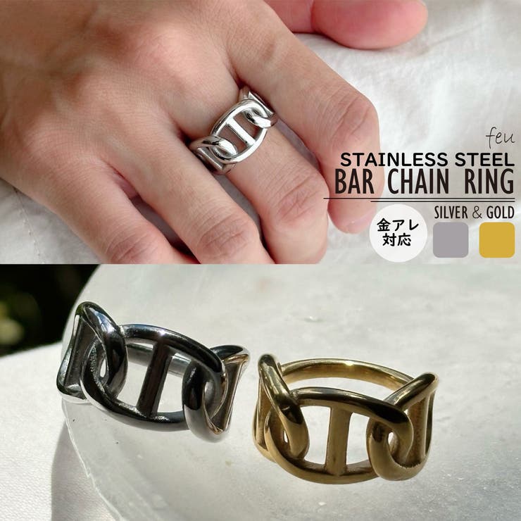 【サージカルステンレスBAR CHAIN RING】バックル金具を連ねたようなモチーフが印象的なサージカルステンレスリングボリュームがあるデザインながらも抜け感のある作りで脱着しやすく表面も滑らか。 シーンレスで活躍するデザインです。 またアレルギー対応素材のサージカルステンレスを採用。 長時間着用も安心ですカラーはシルバー・ゴールドの2色展開になります。 ≪サイズ詳細≫・12号 ≪重量≫・約 5.7g -----------------------------≪素材≫・サージカルステンレス-----------------------------≪注意事項≫○お取扱いに関して〇・シルバー色 ステンレス製そのままのお色です。 金属アレルギーの方にも安心してご使用いただけます。 ※稀に体調の変化等でアレルギー反応をおこす方もいます。 〇・ゴールド色ステンレスの上に18K品位のゴールドを金属メッキコーティングを施しています。 金属アレルギーが酷い方にはシルバー色のご使用をお勧めいたします。 商品による怪我、アレルギートラブルには弊社では責任負いかねますので十分ご理解頂いた上でご使用お願いします。 ○品質に関して・お使い頂くのに問題ない程度の、多少のキズ・汚れ・へこみ・メッキムラがある場合があります。 ・入荷時期により若干のカラー・仕様の変更がある場合がございます。 ・モニターやお使いの環境により実際の商品と多少色味が異なって見える場合がございます。 以上をご了承の上お買い求めください。 #サージカルステンレス#リング#抜け感#アレルギー対応#長時間着用#韓国ファッション#新作返品・交換について購入後の交換は受け付けておりません。 予めご了承ください。 返品を希望される場合は購入履歴一覧の「ショップへの問い合わせ」よりお問い合わせください。 =========================複数配送先指定について1件の注文に対して、異なる住所への配送は対応出来かねます。 恐れ入りますが、異なる住所へ配送をご希望の場合、配送先毎に分けて注文いただきますようお願い申し上げます。 【アクセサリーWOMEN】シルバー ゴールド F 【10%OFFクーポン!2/10(火)1:59まで】feu サージカルステンレス リング アレルギー対応素材 太目 フィット感 デザイン シルバーゴールド アクセント 万能 韓国 春夏秋冬 レディース通販 2024年新作 アクセサリー 1,899 ~