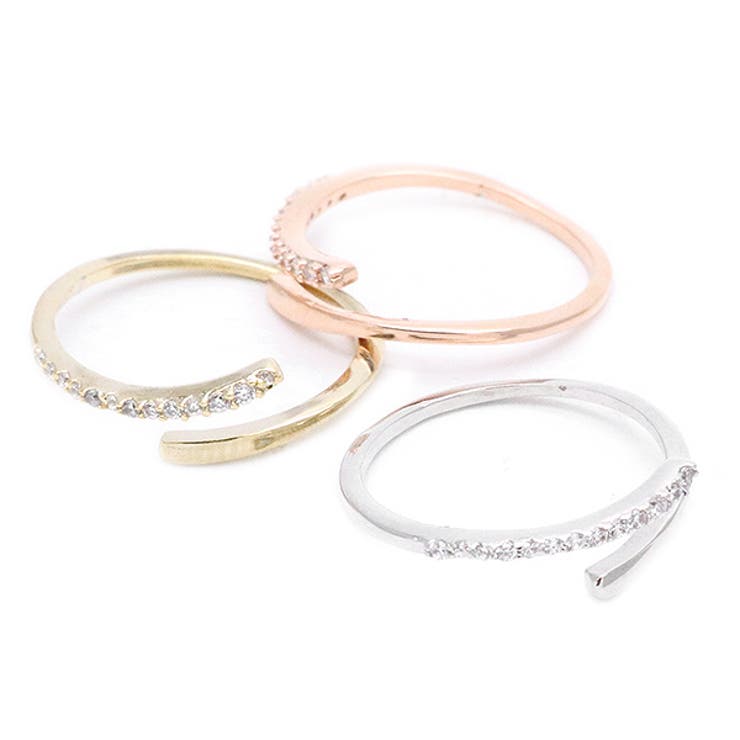 素材真鍮製(プラチナロジウムコーティング/ゴールドコーティング/ピンクゴールドコーティング/ニッケルフリー)キュービックジルコニアサイズ幅最大約1.5mm厚み約1.7mmキュービックジルコニア直径約1mmシンプルデザインのレディースリングです。 艶やかなリングにキュービックジルコニアを並べてセット。 シンプルながらもアクセントになり女性らしさのある、華奢なフォルムでさりげなくデイリーに使えるかわいらしさ。 1つで使うのもはもちろん、他のリングやアクセサリーと合わせて使うのにもバッチリ◎プライベートからお仕事中など、シーンを選ばずに活躍してくれそう。 あなただけのコーディネートを楽しんでください。 リング自体が繋がっていないので、若干のサイズ調節が可能です。 ニッケルフリーは金属アレルギーの原因の一つであるニッケルを使用しない、 お肌に優しい素材です。 カラーはシルバー、ゴールド、ピンクゴールドからサイズは9号、11号、15号、17号からお選びいただけます。 返品・交換について購入後の交換は受け付けておりません。 予めご了承ください。 返品を希望される場合は購入履歴一覧の「ショップへの問い合わせ」よりお問い合わせください。 =========================複数配送先指定について1件の注文に対して、異なる住所への配送は対応出来かねます。 恐れ入りますが、異なる住所へ配送をご希望の場合、配送先毎に分けて注文いただきますようお願い申し上げます。 【アクセサリーWOMEN】シルバー ゴールド ピンクゴールド 9号 11号 15号 17号