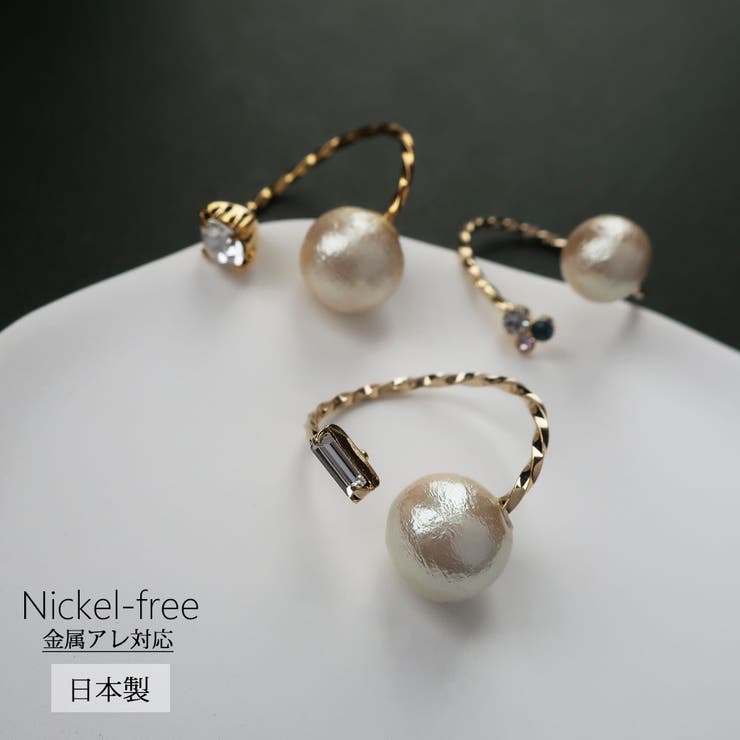 指先に、ふわりと光をのせる。 クラシカルな佇まいのコットンパールリングは、驚くほど軽やかで、長時間の着用でもストレスフリー。 柔らかな艶が肌になじみ、どんな装いにも上品なニュアンスを添えてくれます。 金属アレルギー対応のニッケルフリー仕様で、敏感肌の方にも安心。 日本製ならではの繊細なつくりで、日常にも特別な日にも寄り添う一品です。 【金属アレルギー対応ニッケルフリー】金属アレルギーを引き起こす原因の「ニッケル」を含まずに製造した商品ですので、お肌に優しく安心してご利用いただけます。 (すべての方にアレルギー反応が出ないというわけではありません。 )■商品名:ビジューとコットンパールのオープンリング■商品番号:RG-N8■真鍮製/コットンパール/ビジュー(プレシオサ)■9号?フリーサイズ■ゴールドカラー(K18GP)■日本製■金属アレルギー対応/ニッケルフリー■自由に広げられるフリーサイズですが、極端にまげると折れる場合があります■画面上と実物では多少色具合が異なって見える場合もございます。 ■仕様および外観は、改良のため予告なく変更することがあります。 「MADE IN JAPAN」当店は創業1965年の国産アクセサリーメーカーです。 アクセサリーを作り続けて60年以上。 品質には自信を持ってお届けいたします。 当店のアクセサリーは、当社デザイナーによりデザインされたオリジナルアクセサリー。 すべて日本国内にて職人が1点1点製造しております。 日本製 リング アクセサリー コットンパール フォークリング 指輪 ファランジリング ミディリング レディース 結婚式 入園 入学 卒園 卒業 重ね付け 30代 40代 50代 60代 ジュエリー ゴールド K18GP K18金コーティング 金メッキ ゴールドメッキ プレゼント ブランド Melody Accessory メロディーアクセサリー返品・交換について購入後の交換は受け付けておりません。 予めご了承ください。 返品を希望される場合は購入履歴一覧の「ショップへの問い合わせ」よりお問い合わせください。 =========================複数配送先指定について1件の注文に対して、異なる住所への配送は対応出来かねます。 恐れ入りますが、異なる住所へ配送をご希望の場合、配送先毎に分けて注文いただきますようお願い申し上げます。 【アクセサリーWOMEN】スクエアビジュー 1粒ビジュー 3ドット 【10%OFFクーポン!2/10(火)1:59まで】Melody Accessory 指輪 リング コットンパール レディース 日本製 サイズ K18GP ゴールド ハグリング オープンリング おしゃれ 人気 20代 30代 40代 結婚式 入学 卒業 1,980 ~