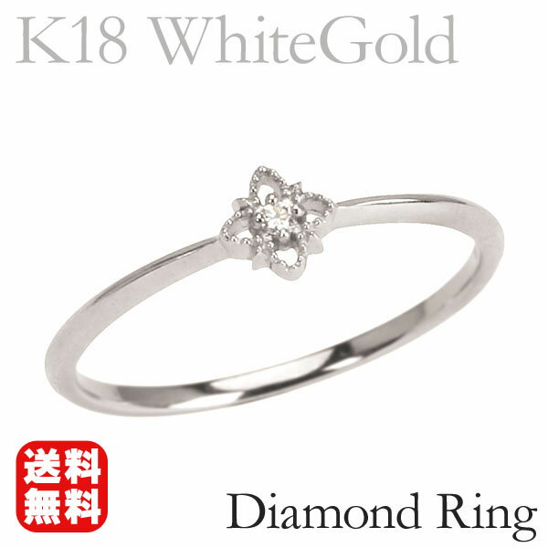 【ただいまポイント10倍中】ホワイトゴールド ピンキー ダイヤモンド リング 指輪 レディース k18 18k 18金 ダイヤ 婚約指輪 花 シンプル 送料無料 おすすめ カジュアル トレンド プレゼント ギフト ジュエリー 福袋 バレンタイン 153,000 ~