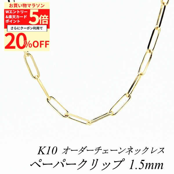 【20%OFFクーポン+3エントリー&楽天カードでP6倍23:59まで】10金ネックレス 10金 K10 10K ペーパークリップチェーン 1.5mm 長さ選べるオーダーチェーン 40cm〜120cm 45cm 50cm 55cm 60cm イエローゴールド ロングネックレス 10金 ネックレスチェーン 32,558 ~