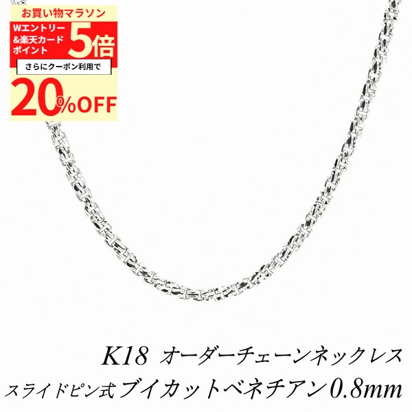 【20%OFFクーポン+3エントリー&楽天カードでP6倍23:59まで】18金 ネックレス ブイカットベネチアンチェーン 0.8mm スライドピン式 長さ選べるオーダーチェーン 40cm〜120cm 45cm 50cm 55cm 60cm 18金 K18 18K ホワイトゴールド 106,568 ~