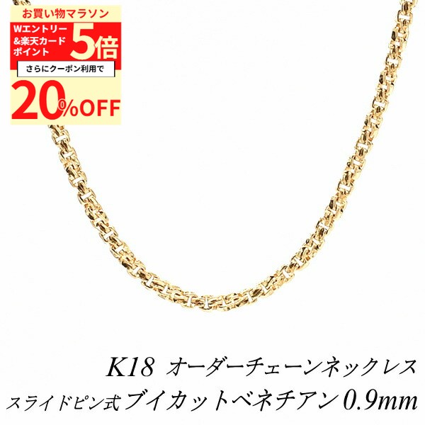 【20%OFFクーポン+3エントリー&楽天カードでP6倍23:59まで】18金 ネックレス ブイカットベネチアンチェーン 0.9mm スライドピン式 長さ選べるオーダーチェーン 40cm〜120cm 45cm 50cm 55cm 60cm 18金 K18 18K イエローゴールド 112,206 ~
