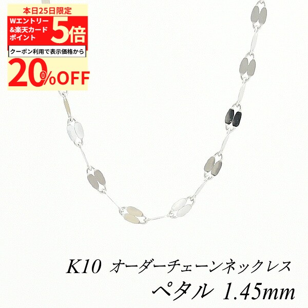 【20%OFFクーポン+Wエントリー&楽天カードでP5倍23:59まで】10金ネックレス 10金 K10 10K ペタルチェーン 1.45mm 長さ選べるオーダーチェーン 40cm〜120cm 45cm 50cm 55cm 60cm ホワイトゴールド ロングネックレス 180日間お修理保証 27,169 ~