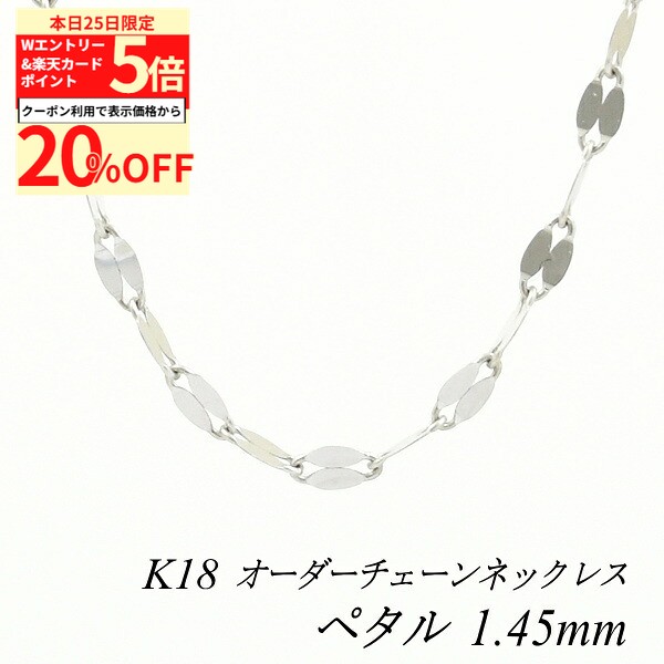 【20%OFFクーポン+Wエントリー&楽天カードでP5倍23:59まで】18金 ネックレス ペタルチェーン 1.45mm 長さ選べるオーダーチェーン 40cm〜120cm 45cm 50cm 55cm 60cm 18金 K18 18K ホワイトゴールド 180日間お修理保証 66,212 ~