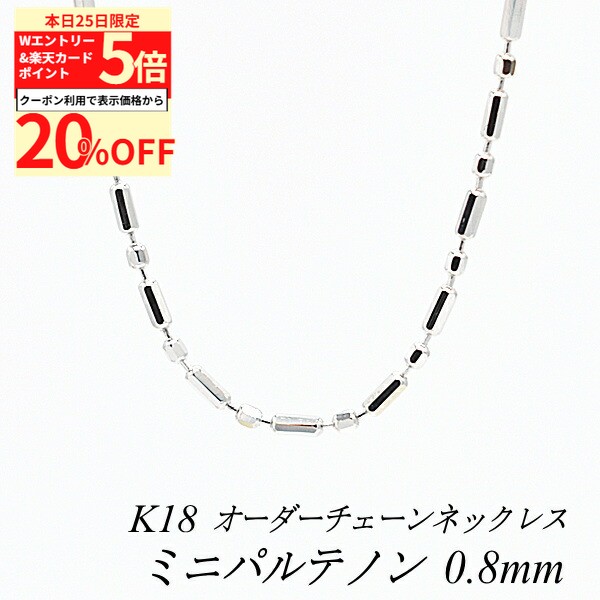 【20%OFFクーポン+Wエントリー&楽天カードでP5倍23:59まで】18金 ネックレス ミニパルテノンチェーン 0.8mm ネックレス チェーン ホワイトゴールド 長さ選べるオーダーチェーン 40cm〜120cm 45cm 50cm 55cm 60cm 18金 K18 18K 166,894 ~