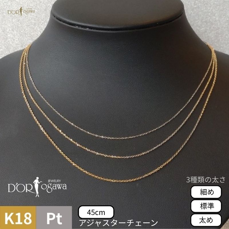 《K18/PT3種の太さ45cmのチェーン》K18イエローゴールド / プラチナ トゥインクル チェーン ネックレス 45cm3種類の太さが選べるキラキラ 45cm 18K K18 18金 gold プラチナ Pt850 Platinum 白金 アジャスター 金属アレルギー対応 34,500 ~