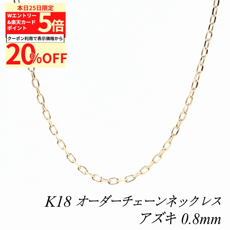 【20%OFFクーポン+Wエントリー&楽天カードでP5倍23:59まで】18金 ネックレス チェーン アズキチェーン 0.8mm ピンクゴールド 長さ選べるオーダーチェーン 40cm〜120cm 18金 K18 18K 普段使い つけっぱなし 180日間お修理保証 44,485 ~