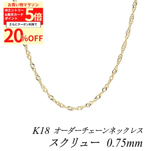【20%OFFクーポン+3エントリー&楽天カードでP6倍23:59まで】18金 ネックレス スクリューチェーン 0.75mm 長さ選べるオーダーチェーン 40cm〜120cm 45cm 50cm 55cm 60cm 18金 K18 18K イエローゴールド 36,310 ~