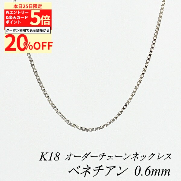 【20%OFFクーポン+Wエントリー&楽天カードでP5倍23:59まで】18金 ネックレス ベネチアンチェーン 0.6mm 長さ選べるオーダーチェーン 40cm〜120cm 45cm 50cm 55cm 60cm 18金 K18 18K ホワイトゴールド 180日間お修理保証 80,644 ~