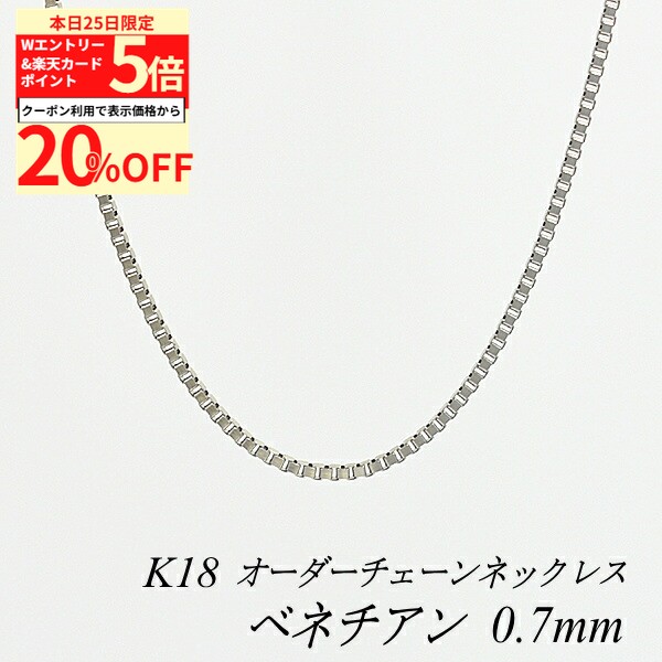 【20%OFFクーポン+Wエントリー&楽天カードでP5倍23:59まで】18金 ネックレス ベネチアンチェーン 0.7mm 長さ選べるオーダーチェーン 40cm〜120cm 45cm 50cm 55cm 60cm 18金 K18 18K ホワイトゴールド 180日間お修理保証 116,568 ~