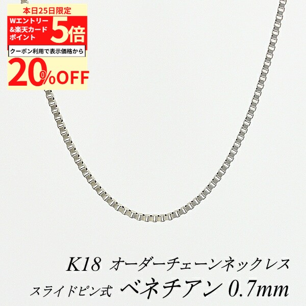【20%OFFクーポン+Wエントリー&楽天カードでP5倍23:59まで】18金 ネックレス ベネチアンチェーン 0.7mm スライドピン式 長さ選べるオーダーチェーン 40cm〜120cm 45cm 50cm 55cm 60cm 18金 K18 18K ホワイトゴールド 180日間お修理保証 135,568 ~