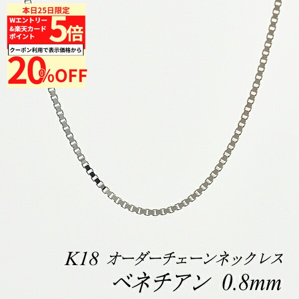 【20%OFFクーポン+Wエントリー&楽天カードでP5倍23:59まで】18金 ネックレス ベネチアンチェーン 0.8mm 長さ選べるオーダーチェーン 40cm〜120cm 45cm 50cm 55cm 60cm 18金 K18 18K ホワイトゴールド 180日間お修理保証 122,073 ~