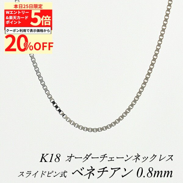 【20%OFFクーポン+Wエントリー&楽天カードでP5倍23:59まで】18金 ネックレス ベネチアンチェーン 0.8mm スライドピン式 長さ選べるオーダーチェーン 40cm〜120cm 45cm 50cm 55cm 60cm 18金 K18 18K ホワイトゴールド 180日間お修理保証 141,073 ~