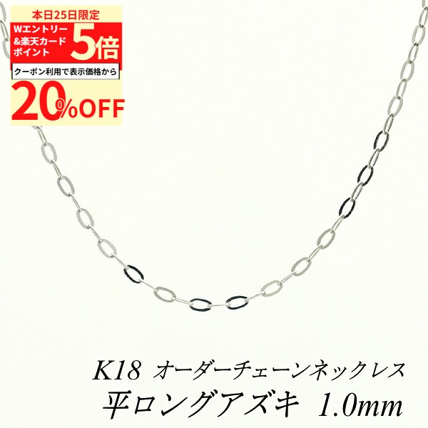 【20%OFFクーポン+Wエントリー&楽天カードでP5倍23:59まで】18金 ネックレス 平ロングアズキチェーン 1.0mm 長さ選べるオーダーチェーン 40cm〜120cm 45cm 50cm 55cm 60cm 18金 K18 18K ホワイトゴールド 180日間お修理保証 57,213 ~