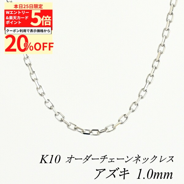 【20%OFFクーポン+Wエントリー&楽天カードでP5倍23:59まで】10金ネックレス アズキチェーン 1.0mm 長さ選べるオーダーチェーン 40cm〜120cm 45cm 50cm 55cm 60cm 10金 K10 10K ホワイトゴールド あずき 小豆 180日間お修理保証 45,408 ~