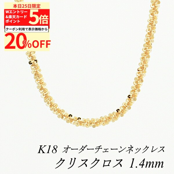 【20%OFFクーポン+Wエントリー&楽天カードでP5倍23:59まで】18金 ネックレス クリスクロスチェーン 1.4mm 長さ選べるオーダーチェーン 40cm〜120cm 45cm 50cm 55cm 60cm 18金 K18 18K イエローゴールド 180日間お修理保証 177,650 ~