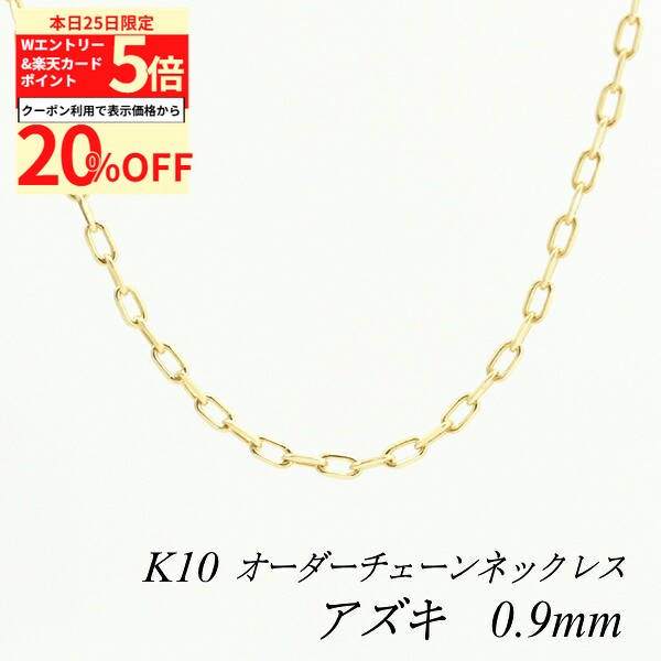【20%OFFクーポン+Wエントリー&楽天カードでP5倍23:59まで】10金ネックレス アズキチェーン 0.9mm 長さ選べるオーダーチェーン 40cm〜120cm 45cm 50cm 55cm 60cm 10金 K10 10K イエローゴールド あずき 小豆 180日間お修理保証 34,025 ~