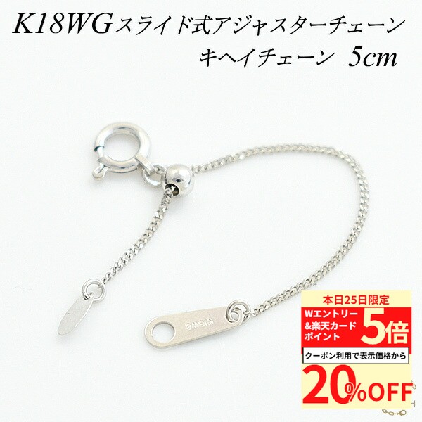 ITEM INFORMATION 素材 18金ホワイトゴールド (K18) ※無垢 (中空ではありません)※ニッケルは含まれておりません サイズ チェーン太さ 0.8mm長さ 全長5cmプレート幅 2.5mmエンドプレート幅 1.8mm 重量 約0.4g ■サイズには多少の誤差が生じる場合がございます。 また、お使いのモニターにより若干色の誤差が生じる場合がございます。 予めご了承くださいませ。 ■当店では少しでもお客様にお安く提供出来るようコストダウンに努めております為、簡易包装での発送になりますことを何卒ご理解くださいますようお願い致します。 18金(Gold)について 通常18金製品には、K18・750 などの刻印が入れられております。 これは、その商品にどれだけの金が含まれているかを記す為の刻印です。 K24 が純度100%の金 (純金) になります。 (24金) K18 なら75%が金 (18金) K14 なら58.3%が金 (14金) K10 なら41.6%が金 (10金) と商品によっては金の割合が違います。 18金イエローゴールド について K18イエローゴールド は純金75%に対して、銀15%と銅10%を配合してイエロー色を強く出していますが、もともと 純金(K24) がイエロー色なので、金製品 は イエローゴールド が一番馴染みのある色だと言われております。 18金 ホワイトゴールド について K18WG ホワイトゴールド は、純金75%に対して、銀15%とパラジウム10%などを配合した割り金になります。 18金 ピンクゴールド について K18PG ピンクゴールドは、純金75%に対して、銅15%と銀10%を配合してピンク色を強くしているので一般的に ピンクゴールド と呼ばれるようになりました。 刻印 18金 商品 K18 750 14金 商品 K14 585 10金 商品 K10 417 アジャスターチェーン 『あと少し長ければ・・・』なんて思った事ないですか?そんな時にとっても重宝するアジャスターチェーン。 ひとつ持っていると、とても便利なアイテムです。 玉をスライドさせるだけで自由にチェーンの長さを調節出来るので、お洋服に合った長さでネックレスをお付けいただけます。 ネックレスの重ね付けしたい時に『持ってて良かった!』と思える一品です。 バックスタイルのオシャレにもこだわりを持つ方には嬉しい一品ですよね。 アジャスターチェーンがあればこんなお悩みも解決です。 短くなって使えなくなった思い出の商品も、アジャスターチェーンを付けてまたお使いいただけます。 ※18金 製品は一般的に金属アレルギーを起こしにくい素材ではございますが、個人差によってアレルギー反応が出る方もいらっしゃいますので、ご注意をお願いいたします。 ※18金 製品は一般的に変色を起こしにくい素材ではございますが、極まれではございますが、変色する場合もございます。 参考ワード バースデープレゼント 誕生日プレゼント ギフト プチギフト 贈り物 成人式 成人祝 結構式 結婚祝 就職祝 ご褒美 入園式 卒園式 入学式 卒業式 同窓会 二次会 女子会 ホームパーティー 人と違う 差別化 クリスマス クリスマスプレゼント バレンタイン ホワイトデー お返し デート カジュアル 普段使い フォーマル 高級 女性 男性 レディース メンズ オフィス アフター 仕事 プライベート 飲み会 記念日 anniversary 結婚記念日 妻へのプレゼント 彼女へのプレゼント 友達へのプレゼント サプライズプレゼント サプライズ 母の日 贈り物 お礼 キレイめ きれいめ ママ友 春 夏 秋 冬 20代 30代 40代 50代 60代悩み を一挙に解決!! とても便利な アジャスターチェーン 便利なアジャスターチェーン お持ちのネックレスに取り付けるだけで 簡単に長さを延長出来る、とても便利な アジャスターチェーンをご用意致しました。 ネックレスが、 『あと少し長ければ・・・』 なんて思った事ないですか? そんな時、 心強い味方になってくれる アジャスターチェーン はひとつ持っていると、 とても便利なアイテムです。 洋服に合わせて、 チェーンの長さを自由に調節出来ちゃう 優れものです。 玉をスライドさせるだけで自由に長さを 調節出来るので、お洋服の襟元や ペンダントトップに合った長さでネックレスを お使い頂けます。 ネックレスの重ね付けしたい時に、 『持ってて良かった!』と思える一品です!! 胸元のあいた洋服には長めに調整したり、 重ねづけする時にアジャスターで調節しながら ベストポイントで装って下さい。 アジャスターで長さ調節するだけで、胸元の表情が 変わり、スタイルに合わせた長さで使える 便利なアイテムです!! 引き輪部分のアップです。 使いやすい定番タイプです。 プレートのアップです。 ※若干の仕様が変わる場合が ございます。 エンド金具のアップです。 シンプルですっきり見えます。 ↑各画像をクリックすると拡大してご覧いただけます ダイヤカットボールチェーン スライド式 長さ10cm アズキチェーン スライド式 長さ10cm ベネチアンチェーン スライド式 長さ10cm キヘイチェーン スライド式 長さ10cm 【もう少し長かったらな… お悩み解決!! お客様満足度NO,1アジャスターチェーン一覧はこちら】 【20%OFFクーポン+Wエントリー&楽天