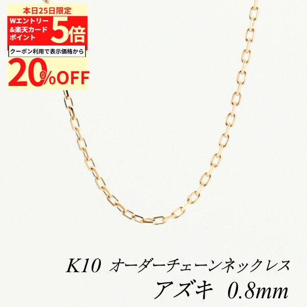 【20%OFFクーポン+Wエントリー&楽天カードでP5倍23:59まで】10金ネックレス アズキチェーン 0.8mm 長さ選べるオーダーチェーン 40cm〜120cm 45cm 50cm 55cm 60cm 10金 K10 10K ピンクゴールド あずき 小豆 180日間お修理保証 28,600 ~