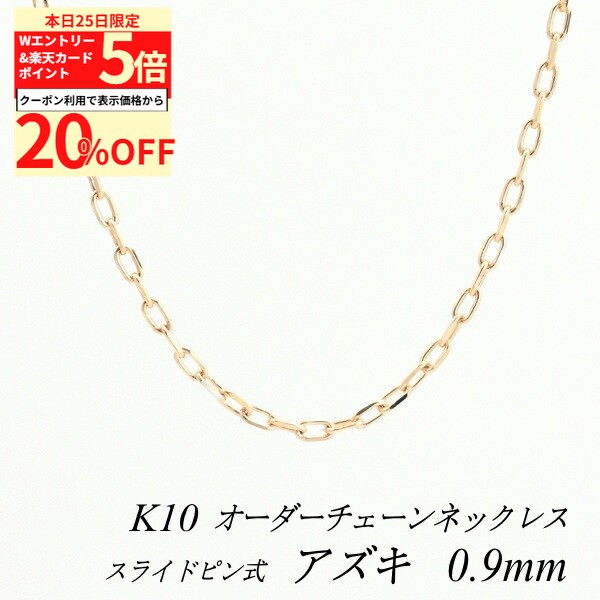 【20%OFFクーポン+Wエントリー&楽天カードでP5倍23:59まで】10金ネックレス アズキチェーン 0.9mm スライドピン式 長さ選べるオーダーチェーン 40cm〜120cm 45cm 50cm 55cm 60cm 10金 K10 10K ピンクゴールド 180日間お修理保証 49,025 ~