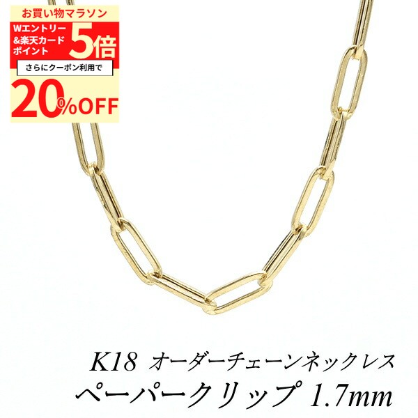 【20%OFFクーポン+3エントリー&楽天カードでP6倍23:59まで】18金 ネックレス ペーパークリップチェーン 1.7mm 長さ選べるオーダーチェーン 40cm〜120cm 45cm 50cm 55cm 60cm 18金 K18 18K イエローゴールド 120,433 ~