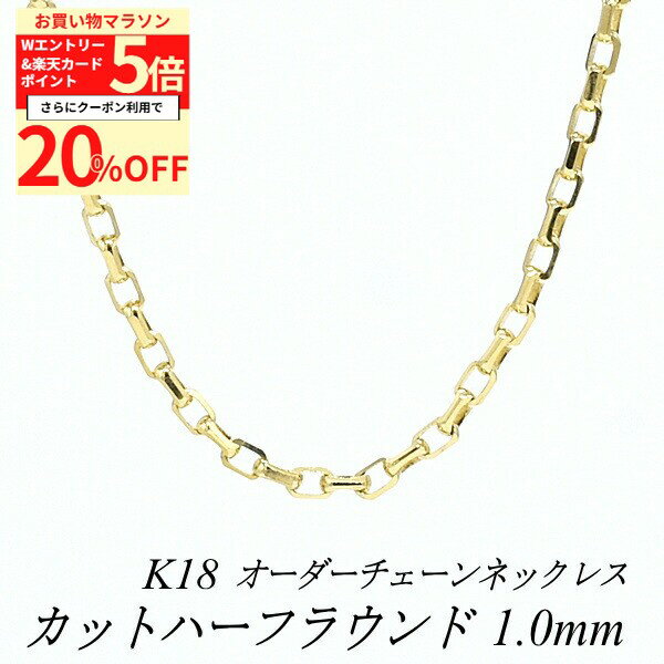 【20%OFFクーポン+3エントリー&楽天カードでP6倍23:59まで】18金 ネックレス カットハーフラウンドチェーン 1.0mm 長さ選べるオーダーチェーン 40cm〜120cm 45cm 50cm 55cm 60cm 18金 K18 18K イエローゴールド 114,386 ~