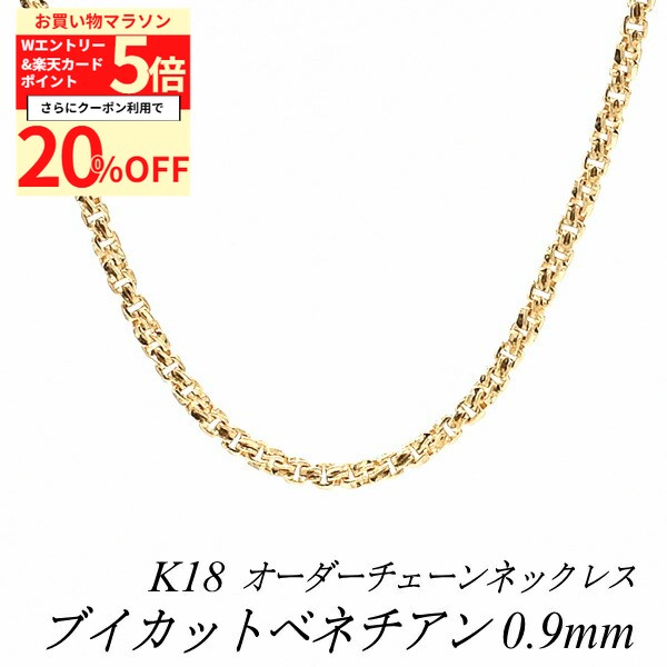 【20%OFFクーポン+3エントリー&楽天カードでP6倍23:59まで】18金 ネックレス ブイカットベネチアンチェーン 0.9mm 長さ選べるオーダーチェーン 40cm〜120cm 45cm 50cm 55cm 60cm 18金 K18 18K イエローゴールド 99,206 ~