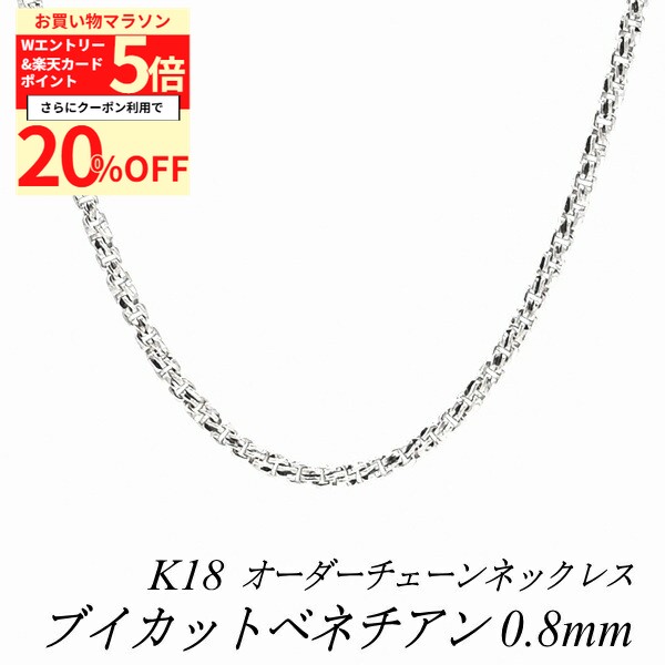【20%OFFクーポン+3エントリー&楽天カードでP6倍23:59まで】18金 ネックレス ブイカットベネチアンチェーン 0.8mm 長さ選べるオーダーチェーン 40cm〜120cm 45cm 50cm 55cm 60cm 18金 K18 18K ホワイトゴールド 91,568 ~