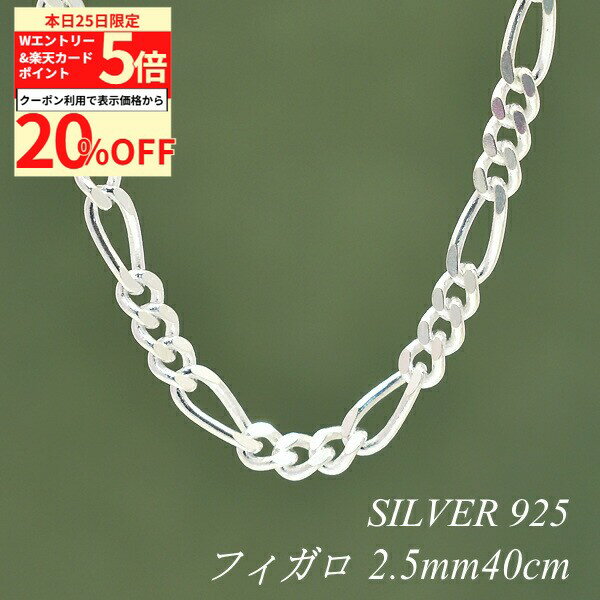 【20%OFFクーポン+Wエントリー&楽天カードでP5倍23:59まで】シルバー ネックレス フィガロチェーン 2.5mm 40cm チェーンのみ チェーンだけ シルバー 925 sv SILVER チェーン ネックレス メンズ レディース sv925 チェーン スターリングシルバー 銀 13,629 ~